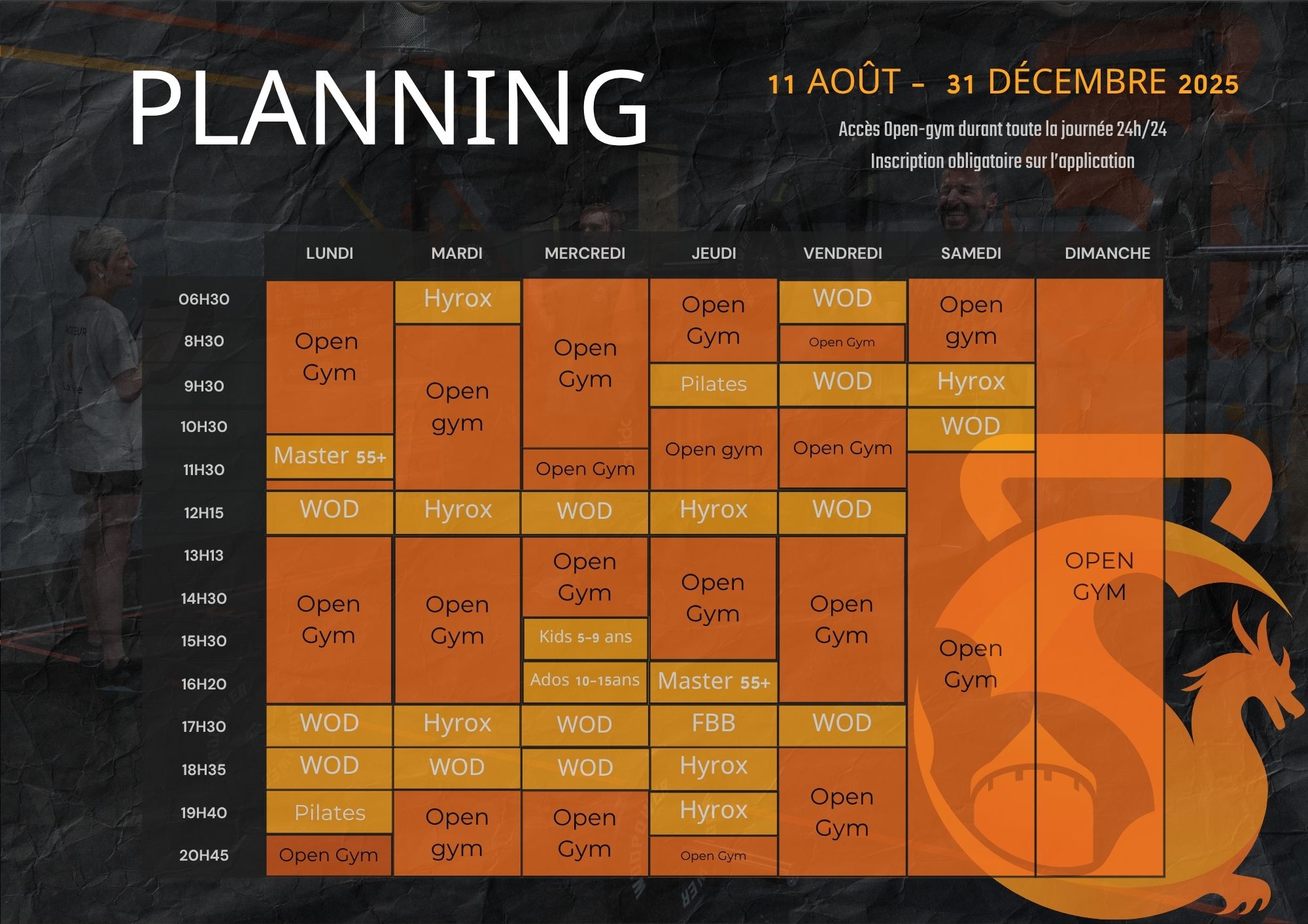 Les sessions WOD & Brunch du dimanche ont lieu 1x/mois et sont annoncées 1 mois à l’avance.